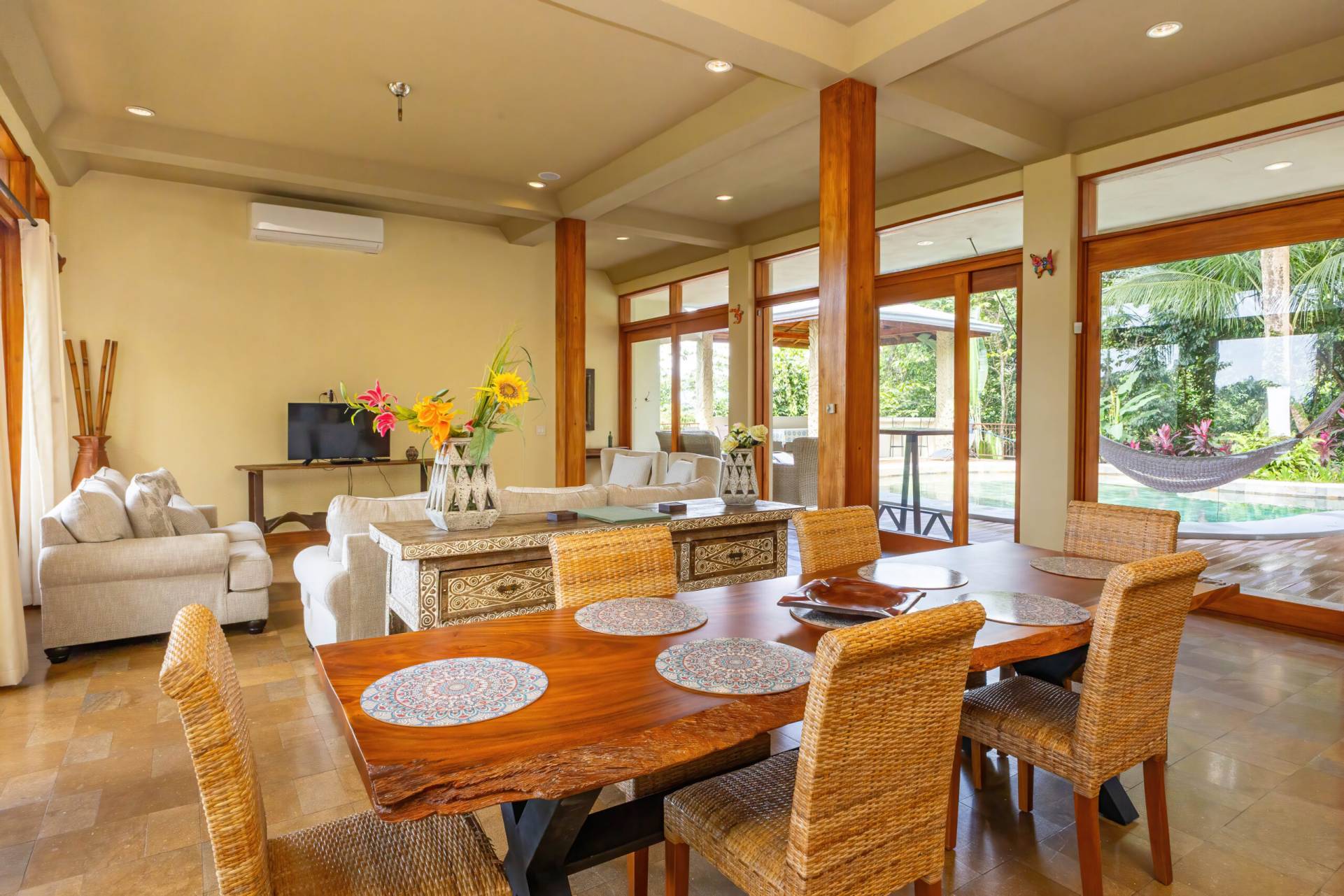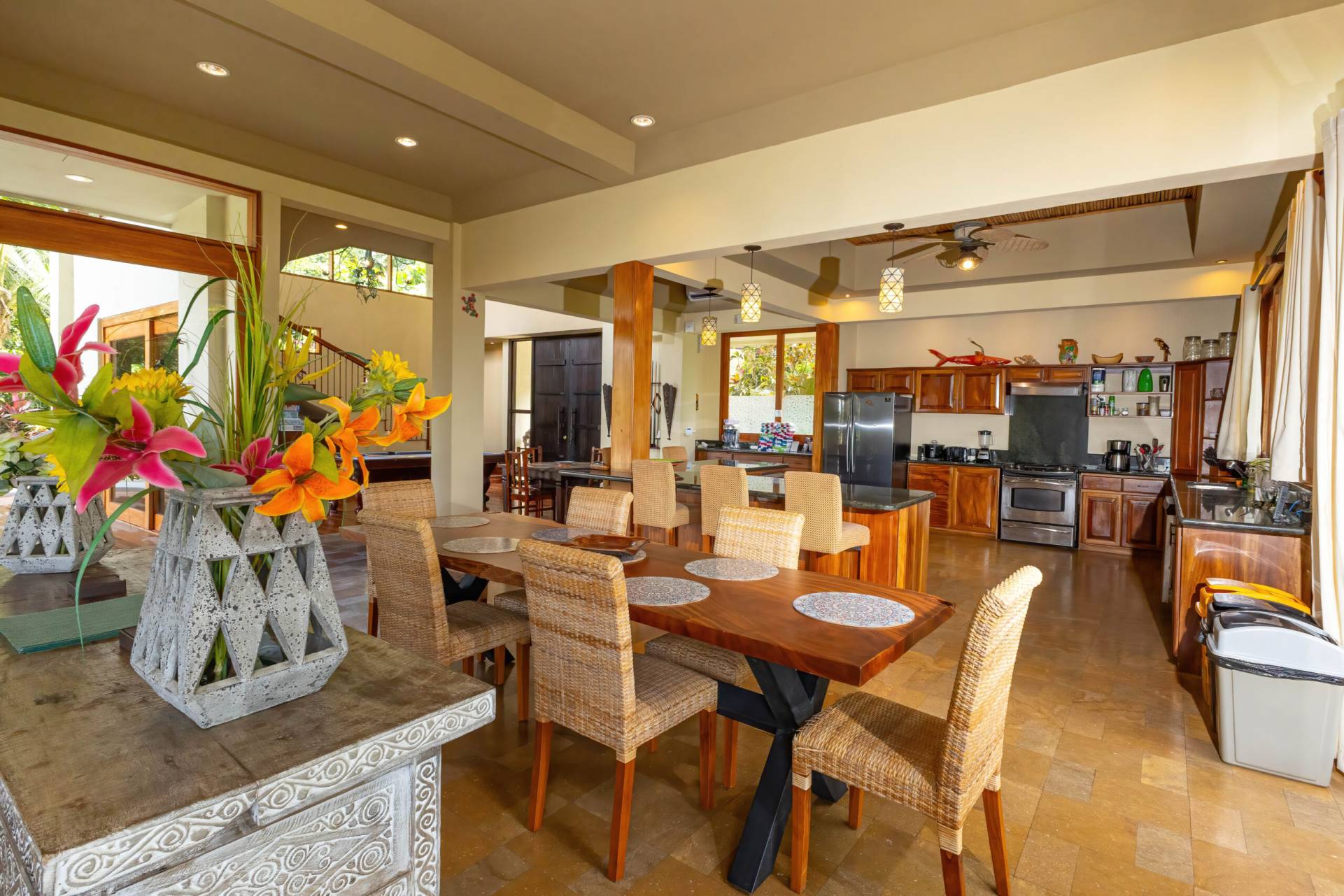 Enjoy a family meal in the spacious kitchen and living room while overlooking the rainforest, take a dip in our large pool while soaking up the sun or get cozy and enjoy a good book at one of the two pool pavilions, this beautiful home has it all. Only a short drive from several local beaches, Estrella del Mar -which means Star of the Sea- gives you the perfect rainforest getaway without giving up on the pristine Costa Rican beaches that everyone seeks.