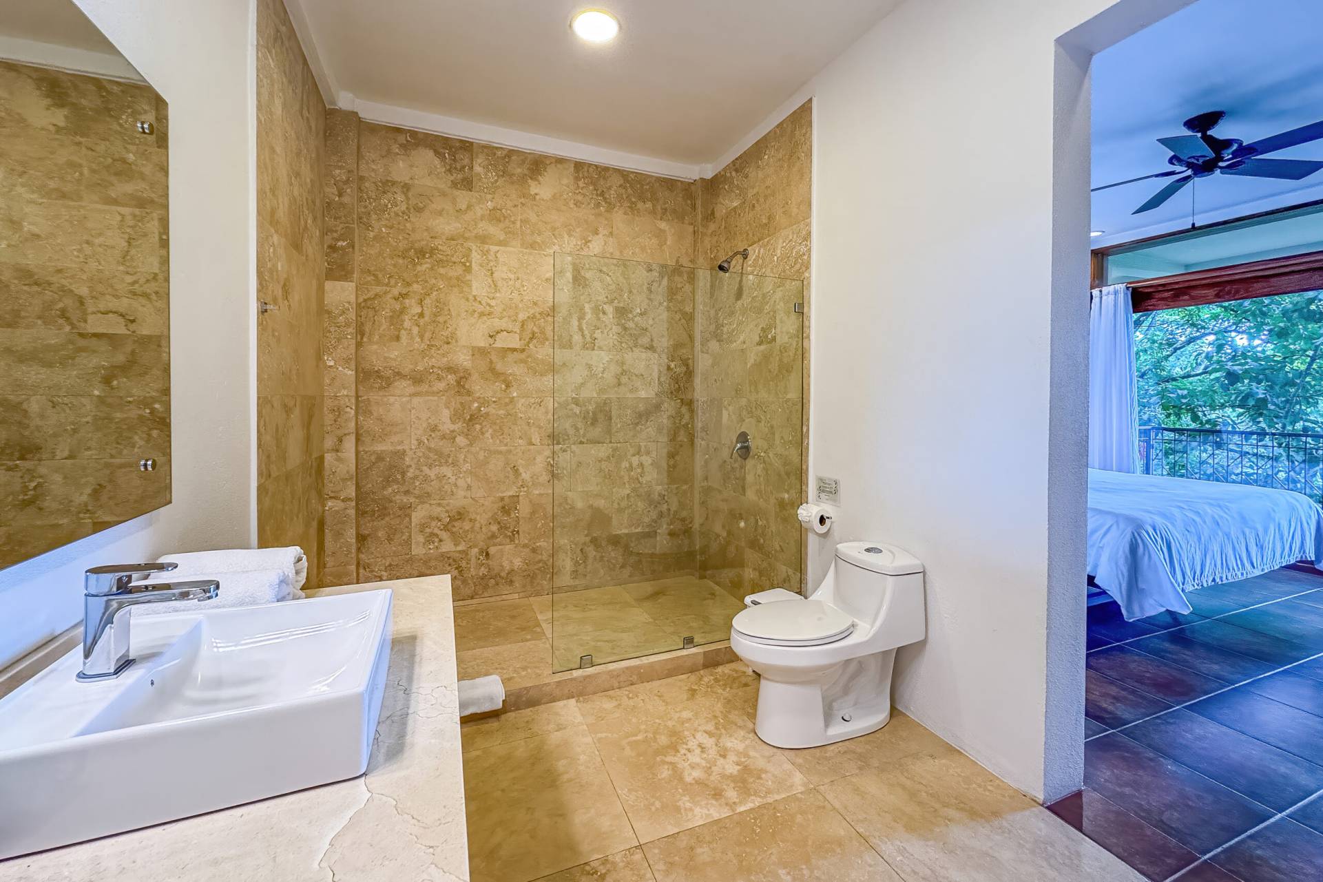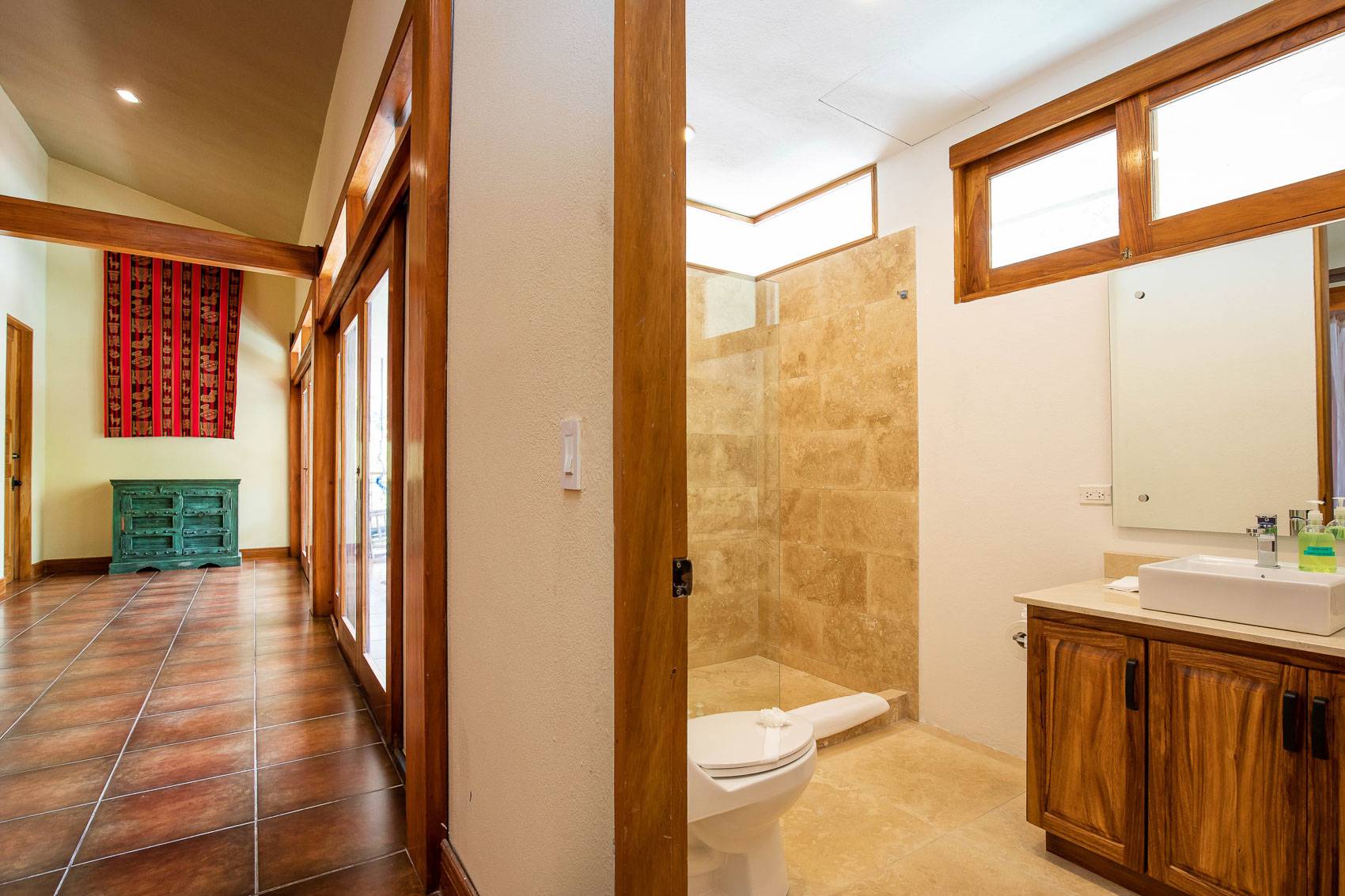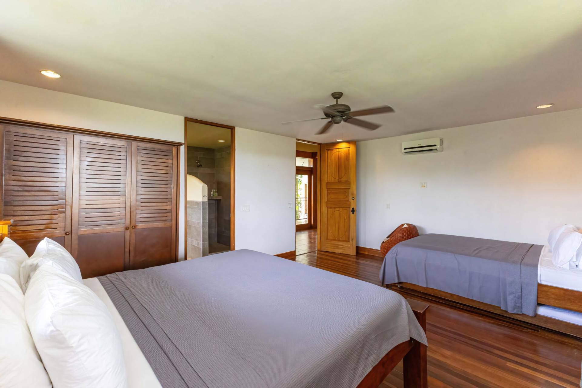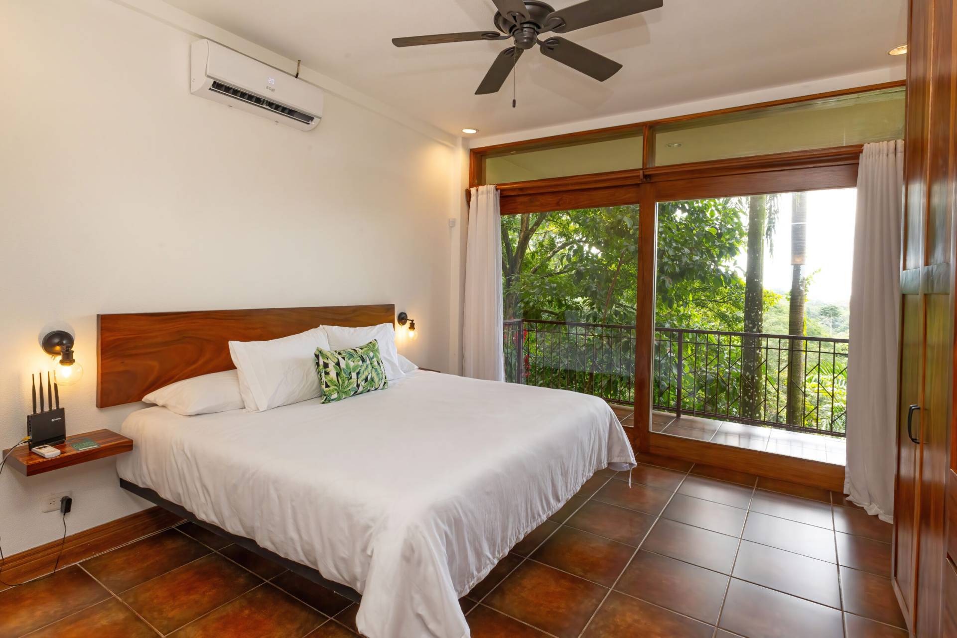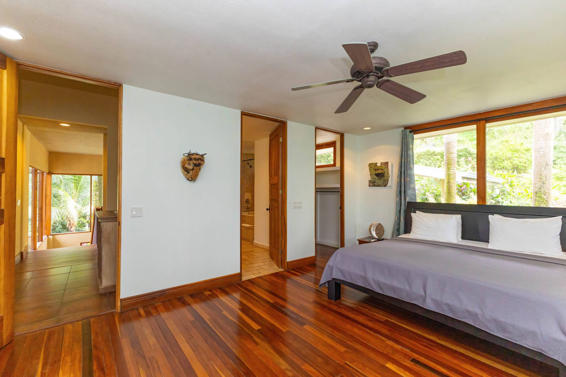 A stunning “Tree House” inspired 3 bedroom luxury villa walking distance to the beach. No car needed! The Bali Tree House is one of Manuel Antonio’s best kept secrets. This expansive 3 bedroom private property was uniquely designed with the adventurer and nature lovers in mind. Constructed to depict a luxury wooden tree house, the flexible floor plan accommodates up to 7 guests comfortably. Expansive wooden floors are met with wrap around sliding glass doors and windows, allowing guests to choose from the fresh breezes or a completely air conditioned villa. Relax with the views and stay connected with our high speed wifi, providing guests with the ability to stay connected during their stay. There’s no need to venture out of your private villa to experience the best of Costa Rica’s wildlife. Curious monkeys frequent the property, allowing guests to soak up the natural beauty in the lush canopy. Large doors welcome guests to the first level where all 3 bedrooms can be found.