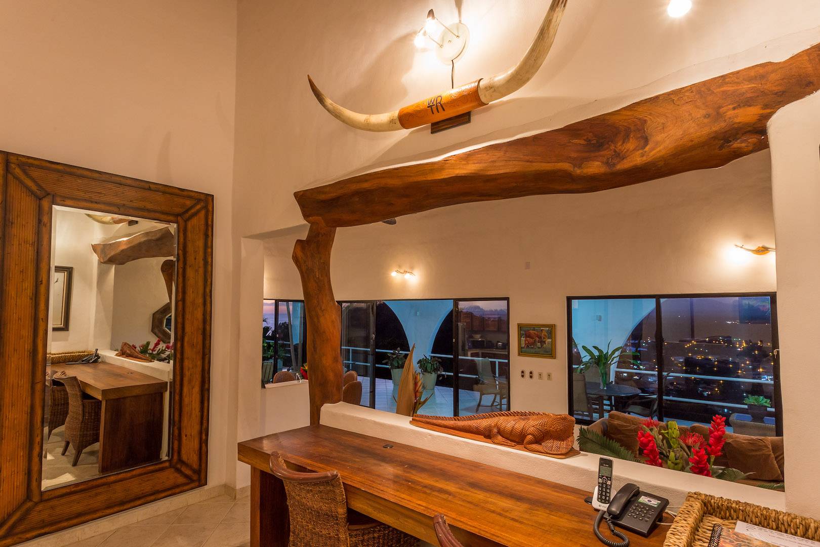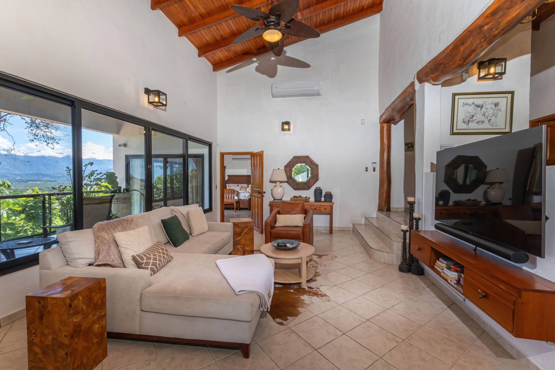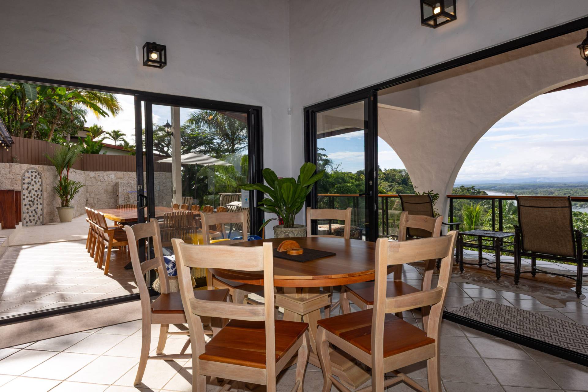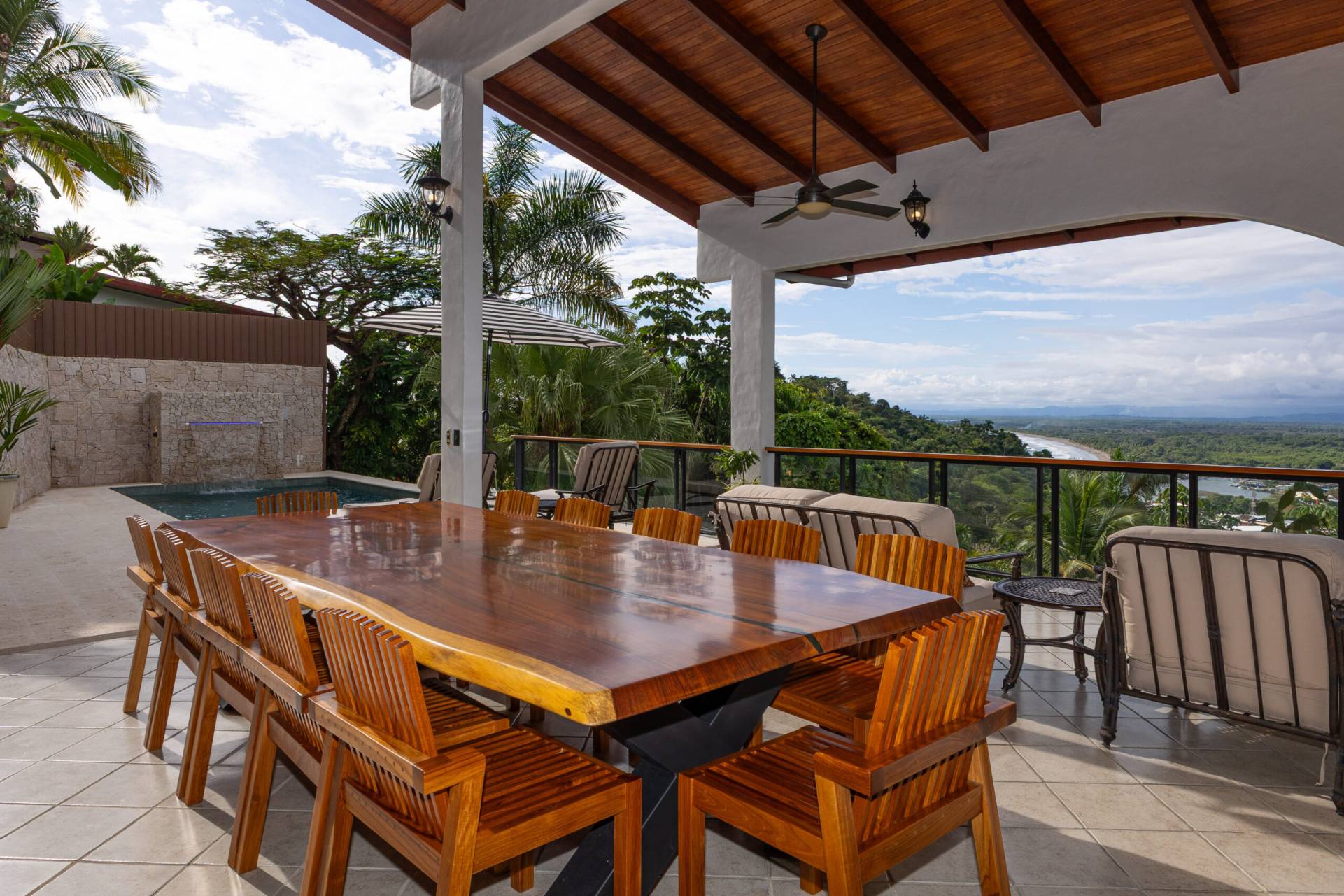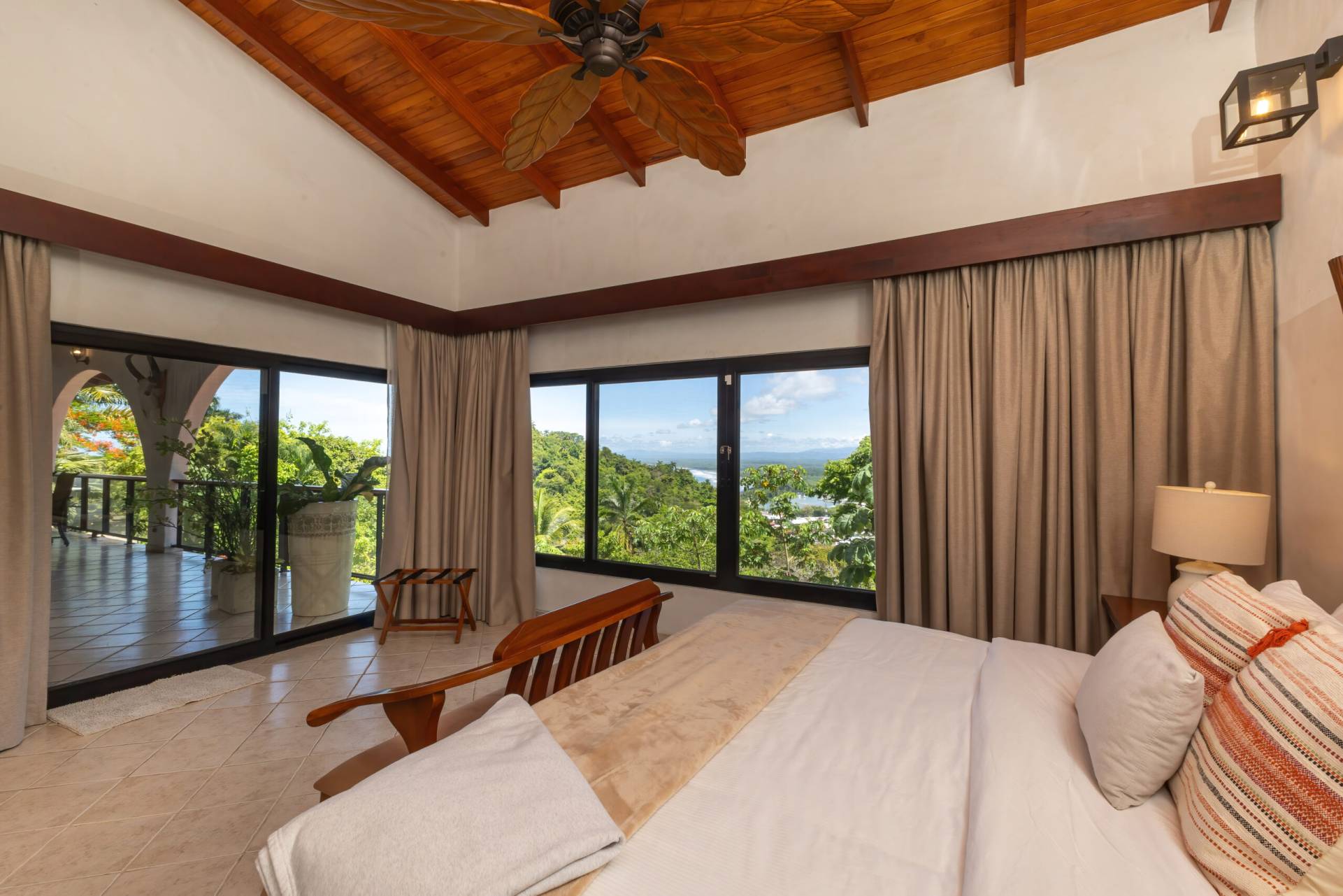 The uniquely located Casa del Toro is a beautiful and spacious 3-bedroom villa with amazing ocean, mountain and town views. Located 2 minutes from the historical port town of Quepos–home to the state of the art Marina Pez Vela– Casa del Toro is close to shopping and nightlife, yet only minutes from the beach and the internationally renowned Manuel Antonio National Park (home to 3 types of monkeys, 2 types of sloths, toucans, scarlet macaws and abundant flora).