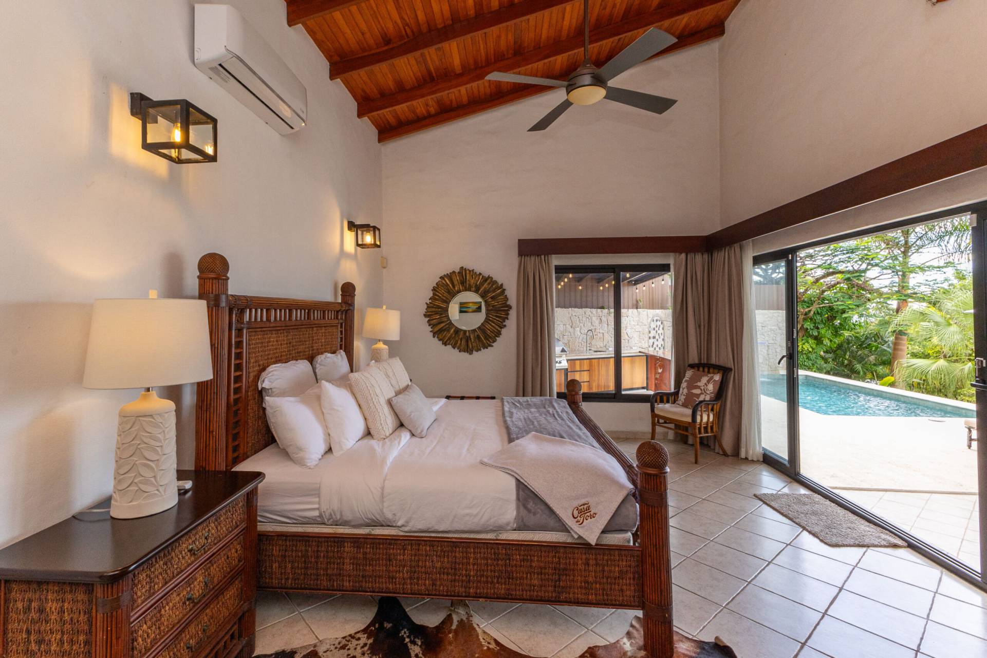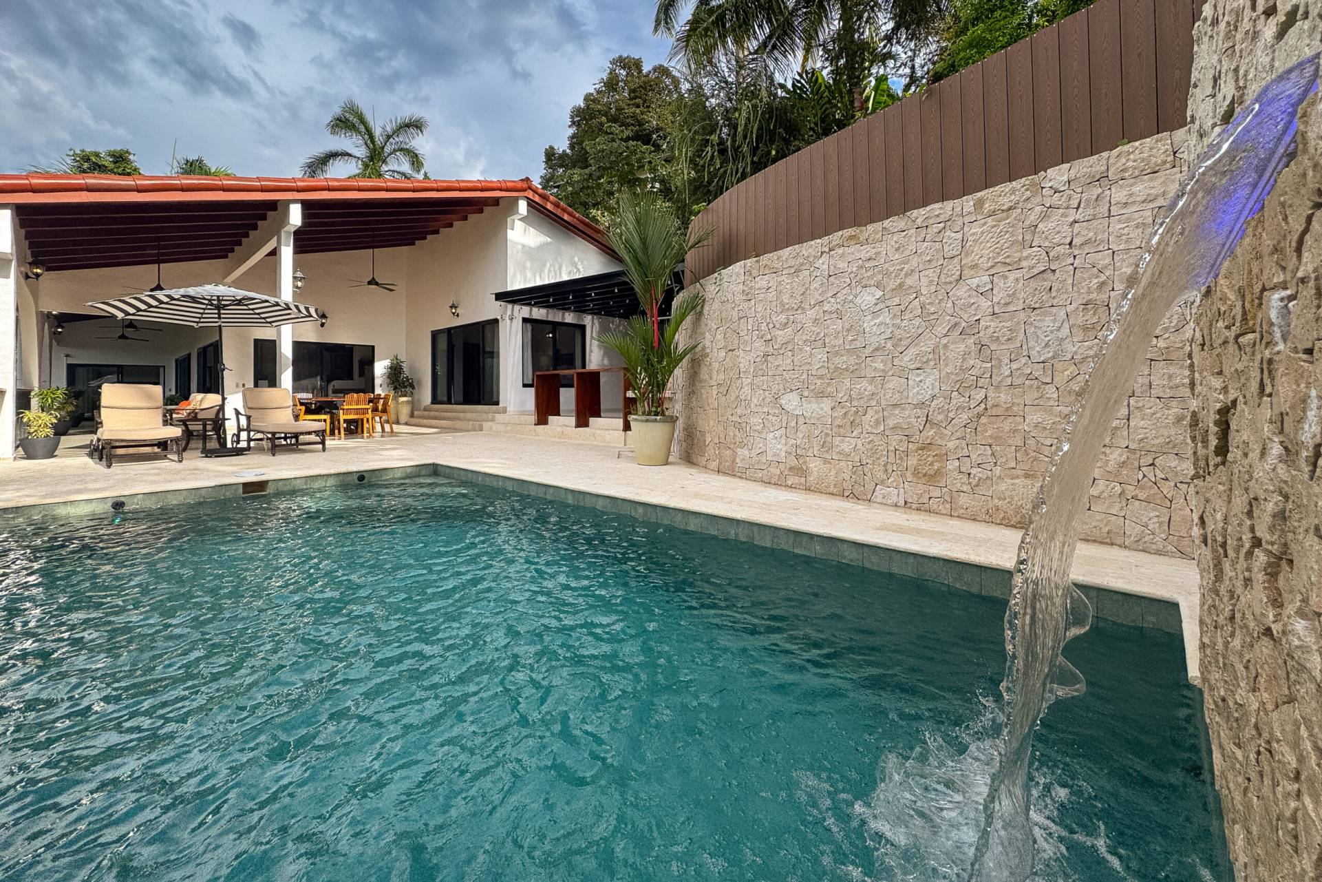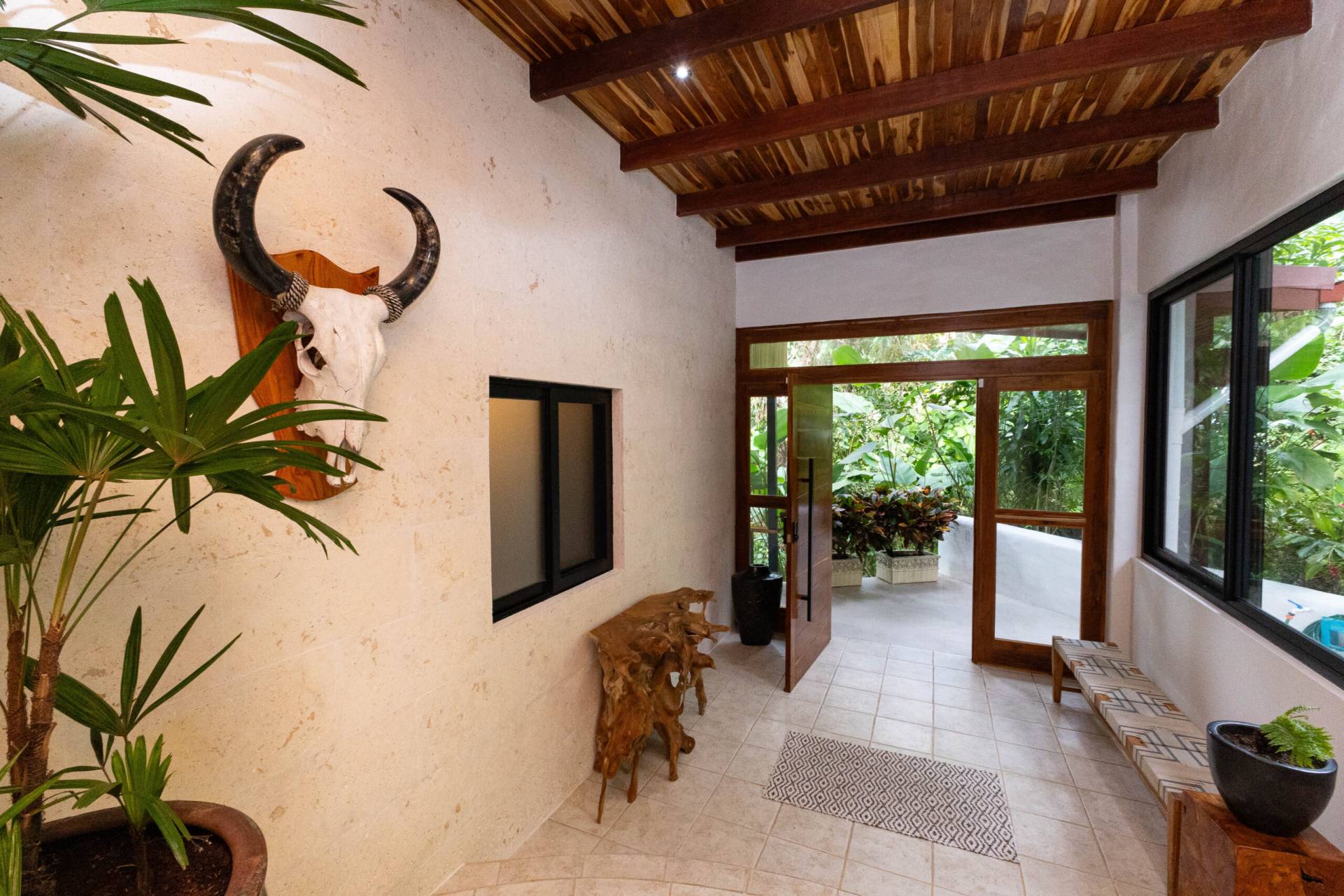 Among the amenities of this amazing villa are high-speed wireless internet, air conditioning throughout, fully equipped kitchen, outdoor pool, BBQ grill, and an ample roofed terrace with seating for 8 for enjoying meals al fresco. The house has parking for up to 4 cars, and is surrounded by abundant flora and fauna; on a typical day you may see magnificent scarlet macaws in flight, or be entertained by a group of titi monkeys passing through.