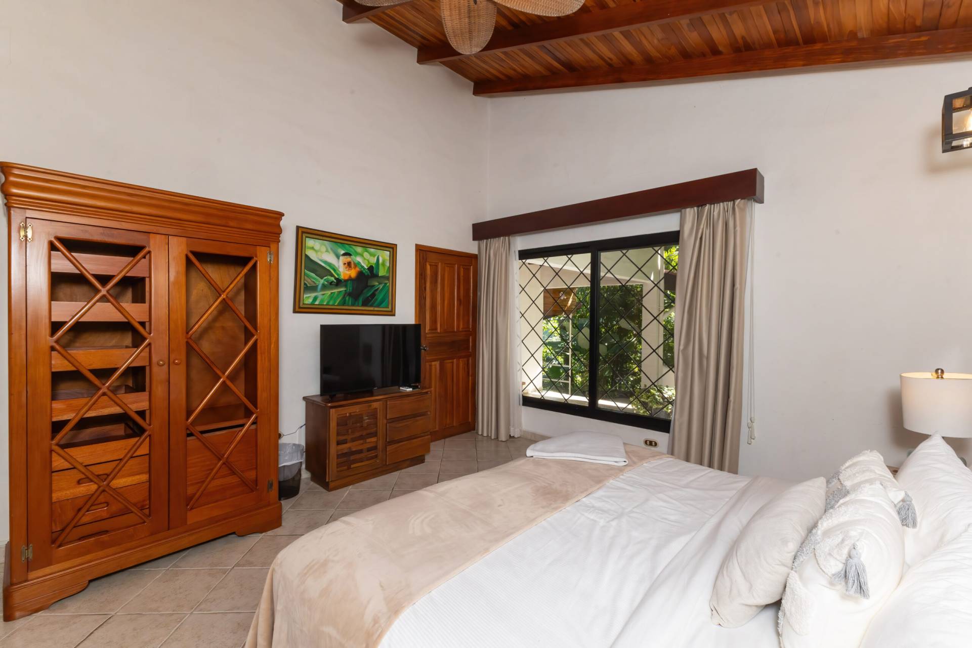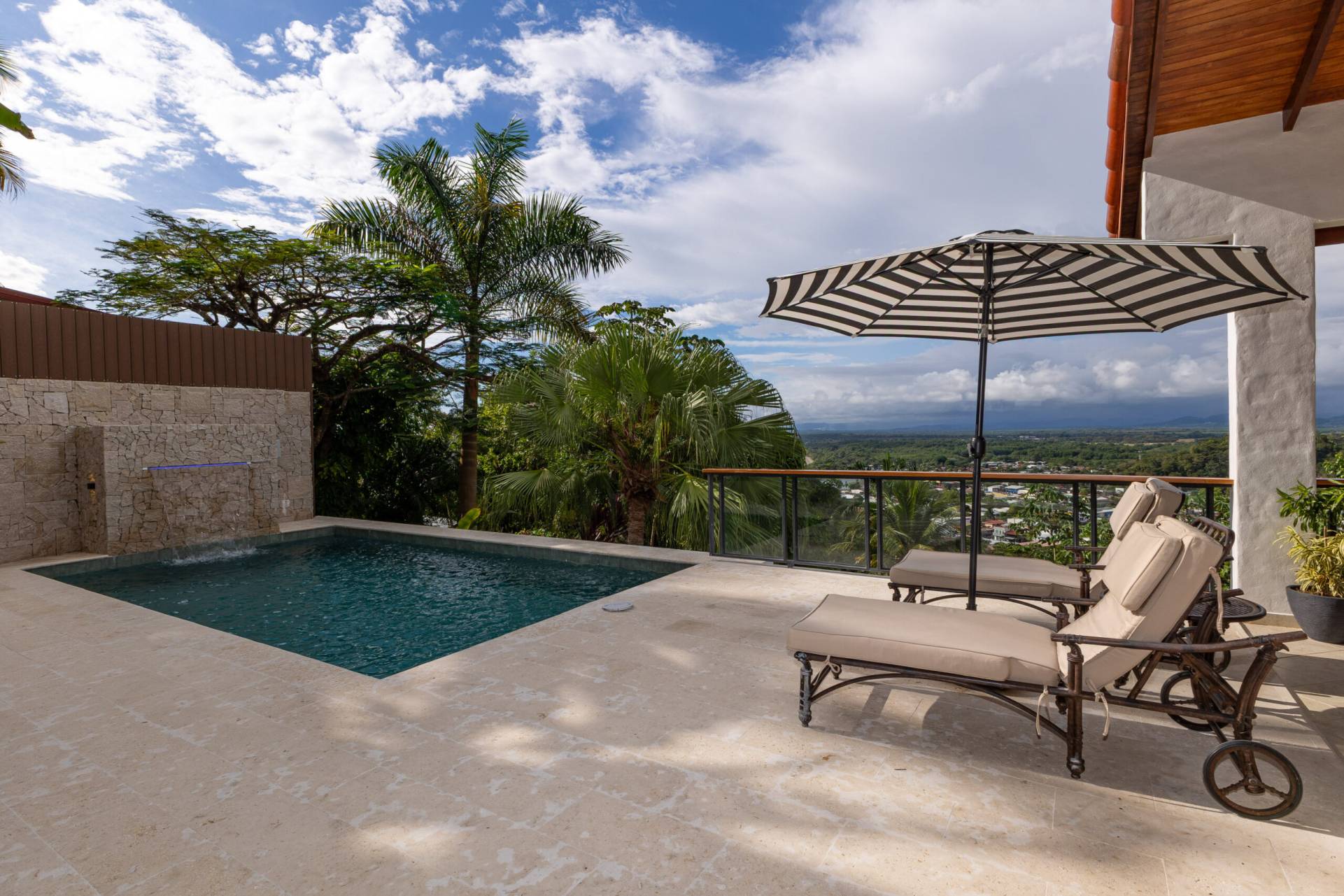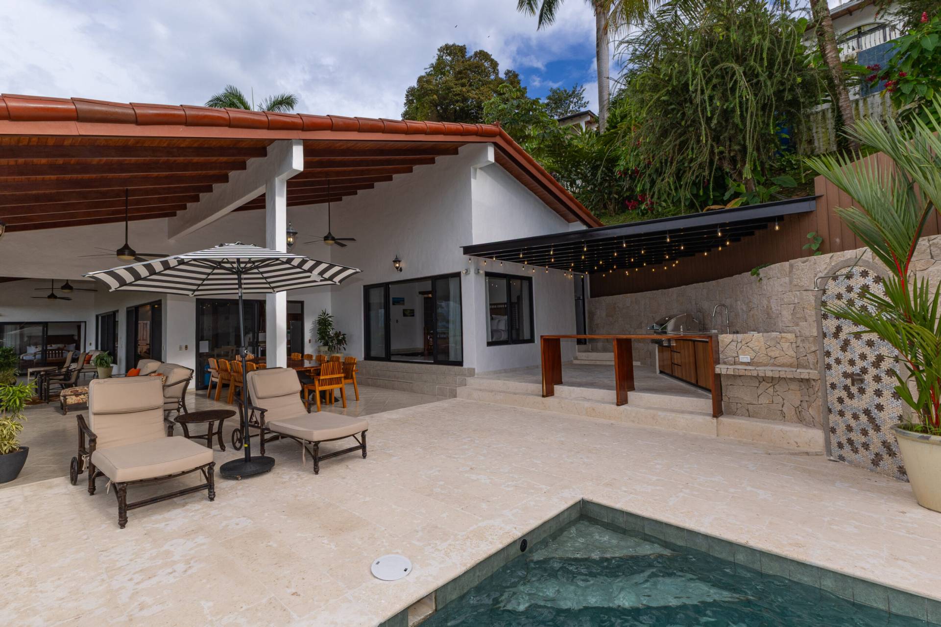 Among the amenities of this amazing villa are high-speed wireless internet, air conditioning throughout, fully equipped kitchen, outdoor pool, BBQ grill, and an ample roofed terrace with seating for 8 for enjoying meals al fresco. The house has parking for up to 4 cars, and is surrounded by abundant flora and fauna; on a typical day you may see magnificent scarlet macaws in flight, or be entertained by a group of titi monkeys passing through.
