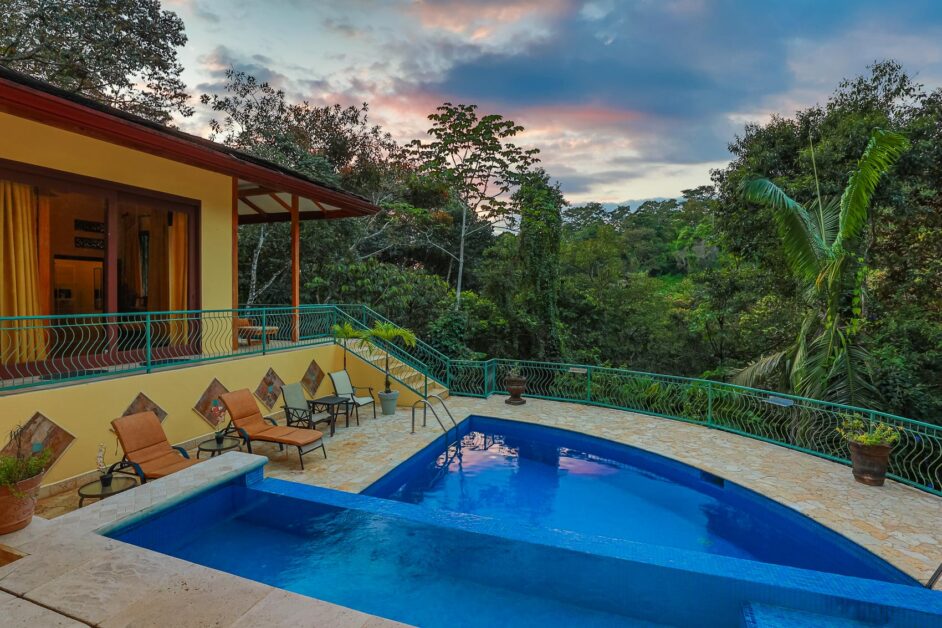 Located in the quiet Rio Mono neighborhood in Manuel Antonio’s Valle Pura Vida, Villa Michelina is a three-bedroom, three-bathroom home with Balinese designs. This home offers a huge living space, a modern kitchen, and a master bedroom with a balcony overlooking the pool. The property conveniently accommodates up to six people and has two more bedrooms, which make it perfect for families. Villa Michelina is the ideal choice for strategic accommodation during the Dorado Derby, since it is easily accessible near Manuel Antonio National Park, the beach, and Marina Pez Vela. Enjoy personalized concierge services for a seamless experience.